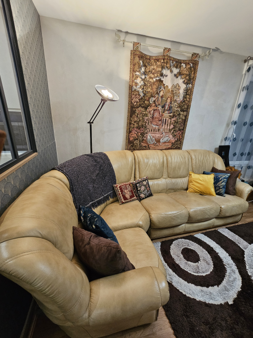 Je vends ce canapé en cuir beige confortable pour votre salon.