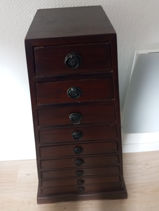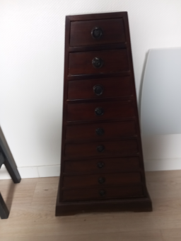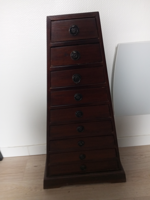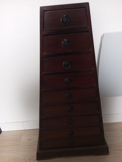 Ce chiffonnier original a été soigneusement remis à neuf et est en excellent état. Son charme vintage et sa restauration minutieuse en font une pièce idéale pour la décoration de votre intérieur. Parfait pour ajouter une touche unique et élégante à n'importe quelle pièce de votre maison. N'attendez plus pour donner vie à votre espace avec ce meuble exceptionnel !