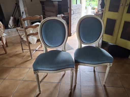 Vends un lot de deux chaises de salle à manger, vintage et confortables. Elles sont en excellent état, idéales pour compléter votre salle à manger ou votre cuisine. . Parfaites pour apporter une touche d'élégance à votre intérieur.