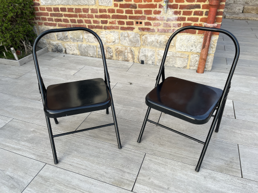 Vends lot de deux chaises pliantes, pratiques et peu encombrantes. Idéales pour la maison, les sorties, le jardin ou un usage occasionnel. Bon état général. Remise en main propre possible selon secteur.