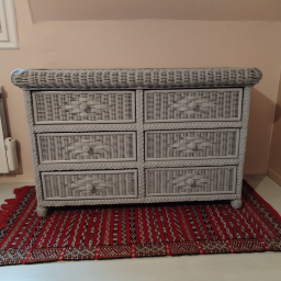 Vends ensemble en rotin : commode 6 tiroirs (l:120; h : 75; p : 50) 2 tables de chevet et un guéridon