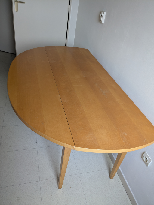 Vends belle table ovale en pin avec rabats. idéale pour un séjour ou une cuisine. Très bon état. Elle peut accueillir facilement jusqu'à 8 personnes et s'intégrera parfaitement dans tout style de décoration grâce à sa finition naturelle. Parfaite pour les repas en famille ou entre amis. À venir chercher sur place.