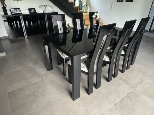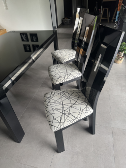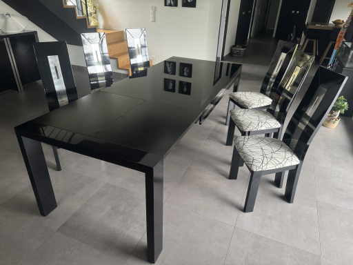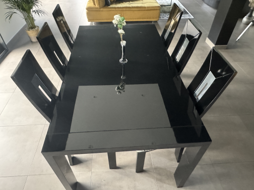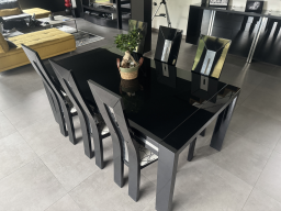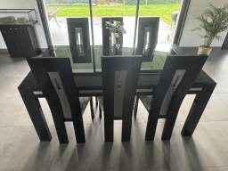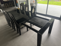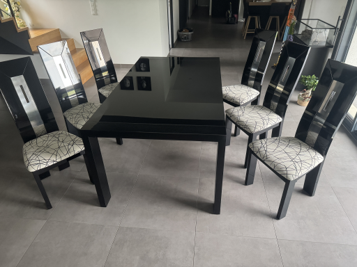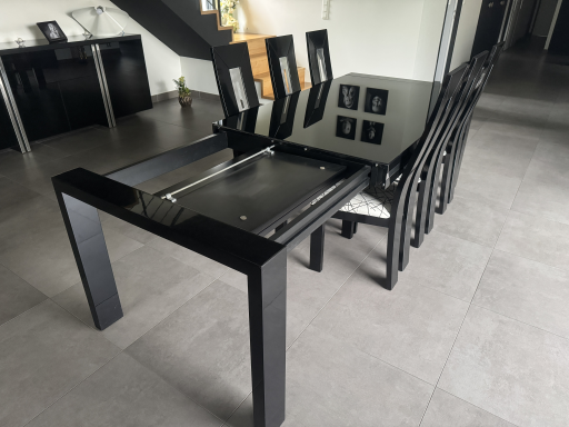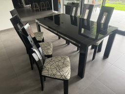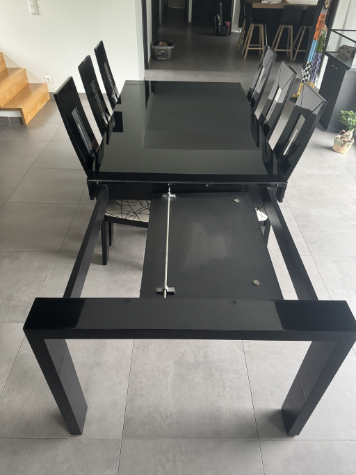 Table en verre laqué noir avec rallonge et 6 chaises