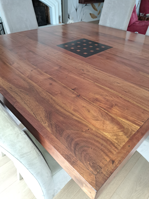 Vends une salle à manger bois acacia massif, en parfait état. Grande table 150x150 pouvant accueillir jusqu'à 8 personnes. Idéale pour les grandes familles ou pour recevoir vos amis. Le style moderne s'intégrera parfaitement dans tout type d'intérieur. Dimensions de la table : 150x150 h 77 cm. À venir récupérer sur place. démontable en 2 partie plateau et pieds Prix négociable.