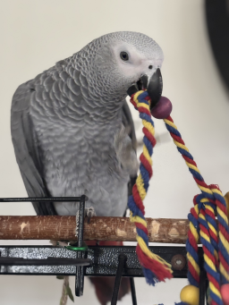 Nous mettons en vente un magnifique Perroquet Gris du Gabon, de bientôt un an.