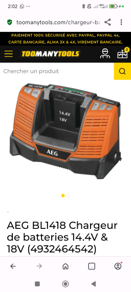 À vendre : Chargeur AEG 14-18V, modèle BL1418, neuf et jamais utilisé. Idéal pour recharger vos appareils AEG. Dispose d'un seul port de charge, ce qui le rend compact et facile à transporter. Parfait pour les outils de bricolage et d'équipement électroportatif. Ne manquez pas cette opportunité de vous équiper d'un chargeur de qualité immédiatement disponible.