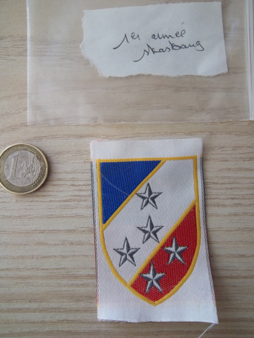 Vends écusson militaire de la 1ère armée, Strasbourg. Insigne en tissu de haute qualité, idéal pour les collectionneurs ou amateurs de militaria. En très bon état. Ajoutez une pièce unique à votre collection !