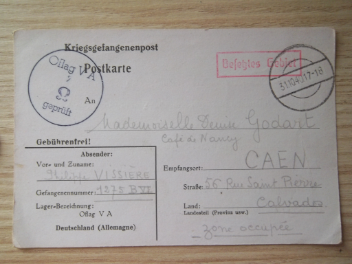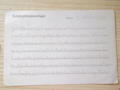 Lettre de prisonnier de guerre du 29 octobre 1940