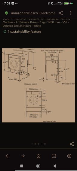 Vends 1 lave linge Bosch WIW24348FF Lave linge Encastrable Série 6 front EcoSilence Drive 7 kg 1200 trs/min 55l Fin différée 24h