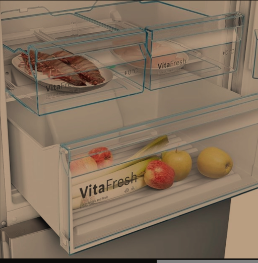 Le réfrigérateur dispose d'un tiroir VitaFresh. Il crée les conditions idéales de stockage pour tous vos aliments frais grce au degré réglable de l'humidité