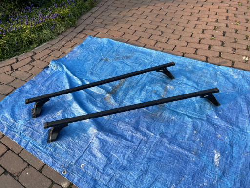 Barres de toit adaptées aux Peugeot 806, Citroën Evasion, Fiat Ulysse et Lancia Zeta. Idéales pour transporter des bagages, coffres de toit ou équipements de loisirs en toute sécurité. Produit en bon état, prêt à être installé sur véhicule compatible.