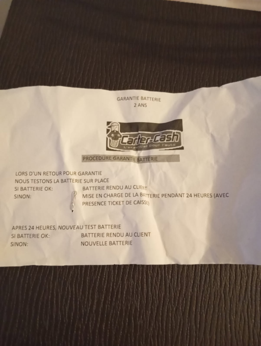 facture fournie à l'achat de la batterie avec le ticket de garantie.