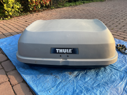 Coffre de toit Thule en bon état, idéal pour augmenter la capacité de chargement de votre voiture lors de vos voyages, week-ends ou vacances. Solution pratique et robuste pour transporter bagages, équipements de sport ou objets volumineux en toute sécurité. Remise en main propre possible selon secteur.