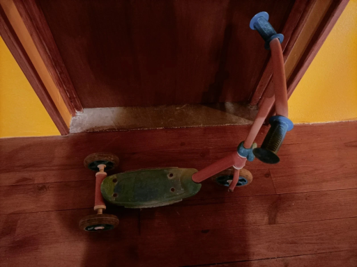 Vends trottinette pour enfant idéal pour débuter, peinture rouge et bleu Spiderman. Ternie par le soleil.