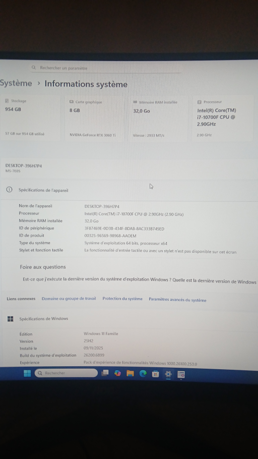 Processus: intel(R) Core(TM) I7- 10700f CPU @ 2.90GHz