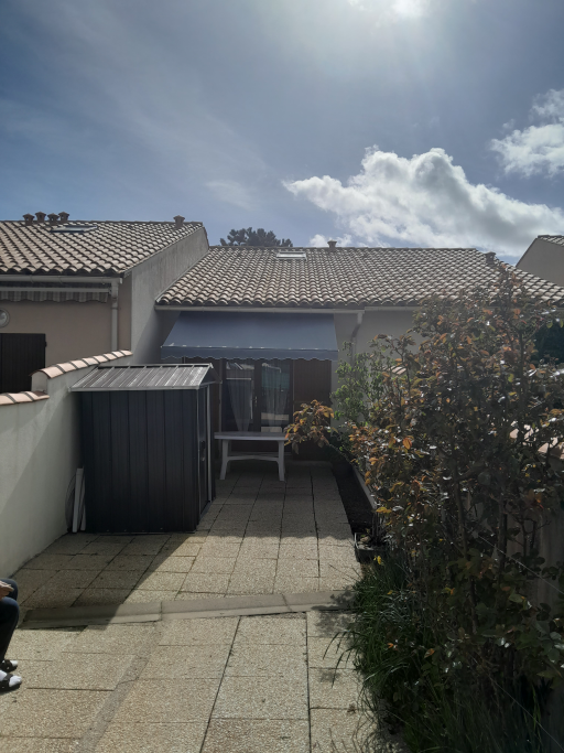 Cour avec salon de jardin, plancha électrique , store.