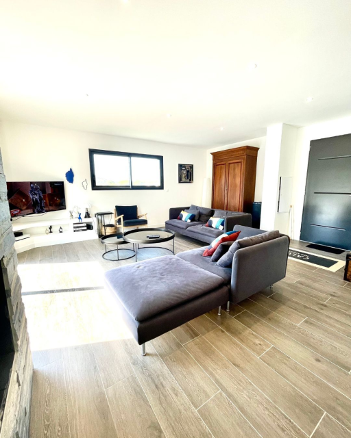 Une pièce à vivre spacieuse et lumineuse composée d'un espace séjour et salon et donnant accès à la terrasse ; Espace de vie convivial offrant une ambiance chaleureuse.