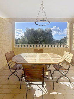 Le séjour s'ouvre sur une agréable terrasse de 17m², véritable prolongement de la pièce de vie. Cet espace extérieur est parfait pour vos repas en plein air, vos petits-déjeuners au soleil ou vos instants de détente à l'air libre.