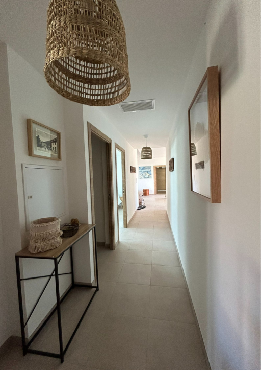 Situé au centre de l'appartement, le séjour agit comme un point de connexion entre toutes les pièces et permet une distribution simple vers les chambres des deux côtés, tout en assurant un espace de vie commun confortable.