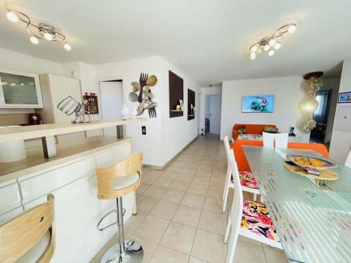 Dès l'entrée, vous serez séduit par une pièce de vie lumineuse et climatisée, pensée pour le bien-être et la convivialité.