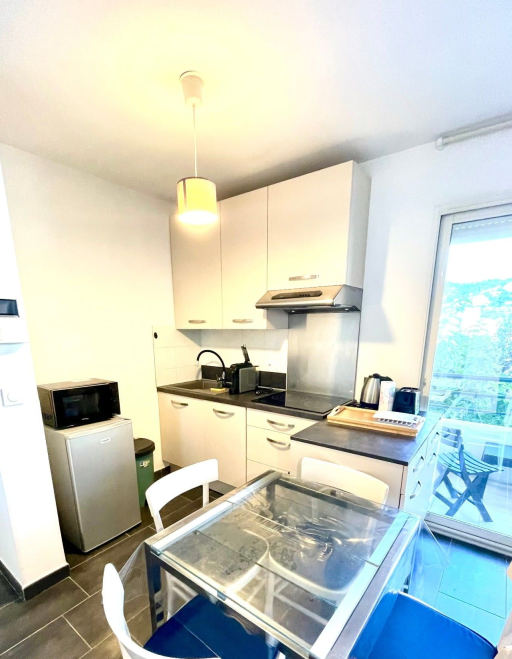 Situé au 1er étage d'un immeuble de standing, il dispose d'une pièce à vivre lumineuse avec cuisine ouverte équipée donnant accès à un balcon exposé sud-ouest avec vue sur les Montagnes.