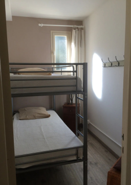 Coté nuit, vous profiterez d'une première chambre avec lit double en 140cm, une deuxième avec deux lits simples superposés ainsi que d'une salle d'eau avec wc intégrés.