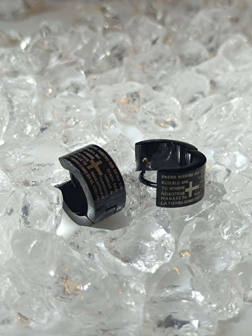 Boucle d oreille homme paire acier inoxydable noir ecriture croix padre nuestro noir