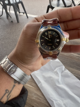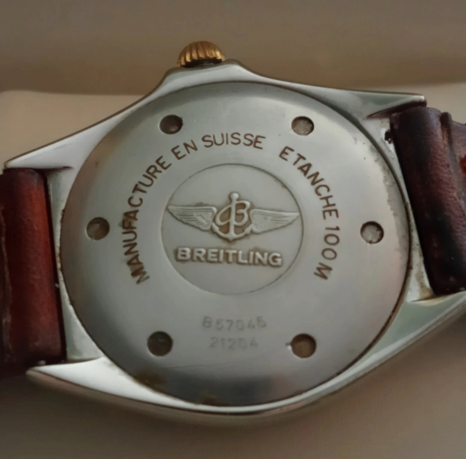 Montre Breitling Callisto à quartz. Boîtier : or et acier. Bracelet : cuir.