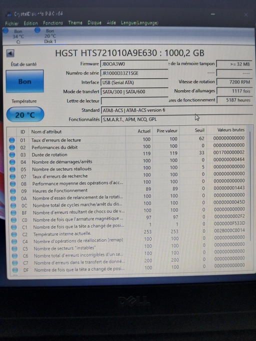 Disque dur HGST Disque Dur 1To SATA 2.5" HTS721010A9E630 Pc Portable 32Mo - Bon état