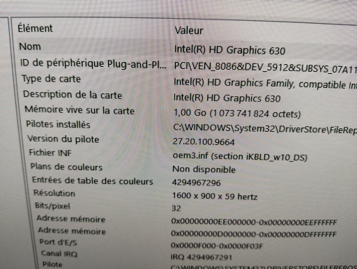 Carte Graphique intégrée Intel HD Graphics 630 - 1 go