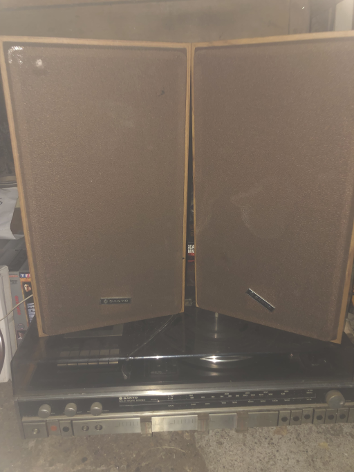 Lot de platine, vinyles, cassettes et meuble en excellent état