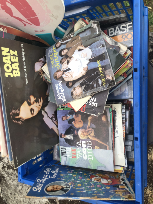 Vends un lot de platine, vinyles, cassettes et meuble en bon état .