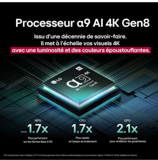 Le processeur haute puissance, maintenant 1,7 fois plus intelligent (4K α9 Gen8), prêt à intégrer les nouveautés de l'IA. Maximise la qualité d'image et de son, en travaillant sur les 33 millions de points de lumière indépendants grâce à l'intelligence artificielle.