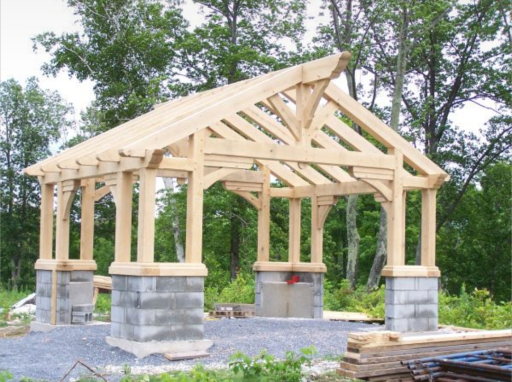 2 arbalétriers complets comportant les contre-fiches , poinçon et entraits, et éléments décoratifs 2 pannes de rive 32 x 145 mm de type 1/2 bastaings 1 panne de faîtage longueur 4,5m 4 bases de poteaux pour pose sur murets hauteur 1m a réalisé par le Client au 4 coins de l'angle de la pergola