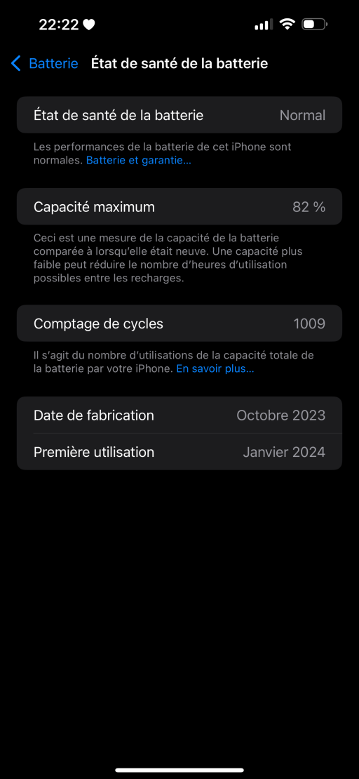 🔋 Batterie : 82% de capacité