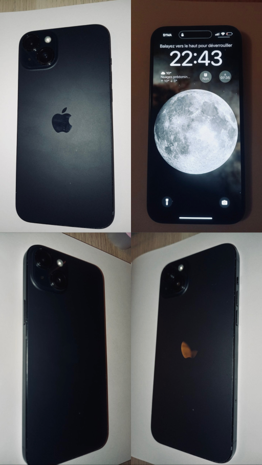 Je vends mon iPhone 15 Plus en très bon état, parfaitement fonctionnel.
