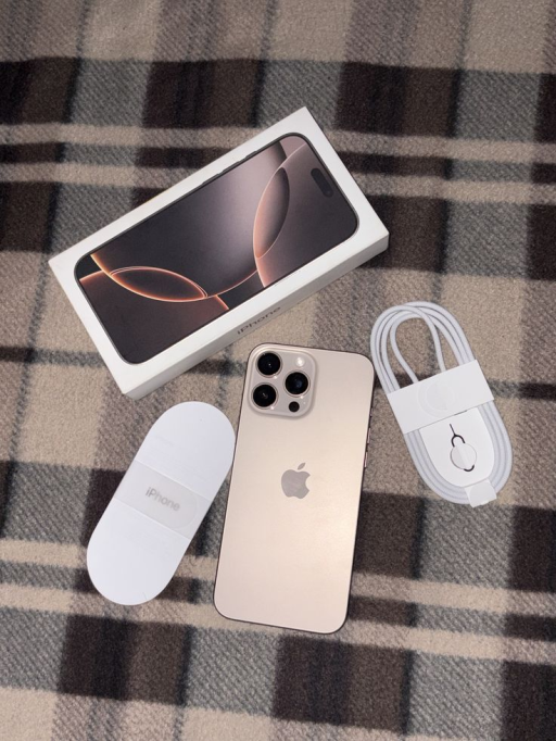 Je vends mon iPhone 16 Pro Max couleur Titane Désert, modèle 512 Go, acheté en mars 2025.