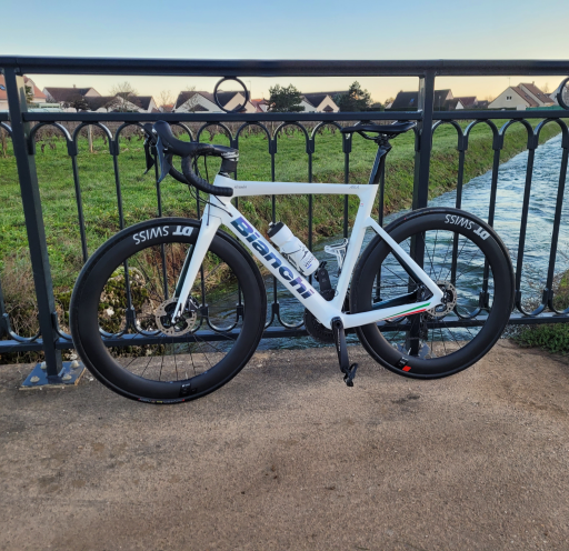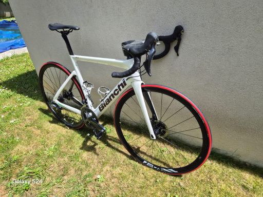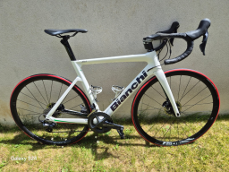 Taille 54 chez Bianchi, je mesure 1,70m. Vendu sans les roues carbones, je le vends avec la paire de roues en aluminium qui est celle d’origine. Entièrement révisé chez mon vélociste Sport et Nature (12 octobre 2024).