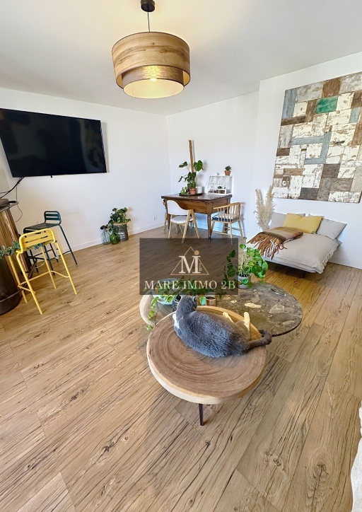 Cet appartement de type T3, entièrement rénové, vous séduira par son bel espace séjour s'ouvrant sur une terrasse avec petite vue Mer.