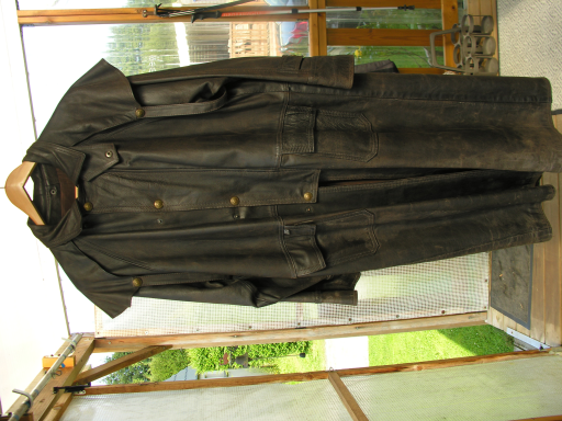 Très beau cache poussière cuir . Longueur totale = 124cm, larg sous aisselles = 65cm, long manche sous aisselles= 50cm. Doit correspondre à un XXL.